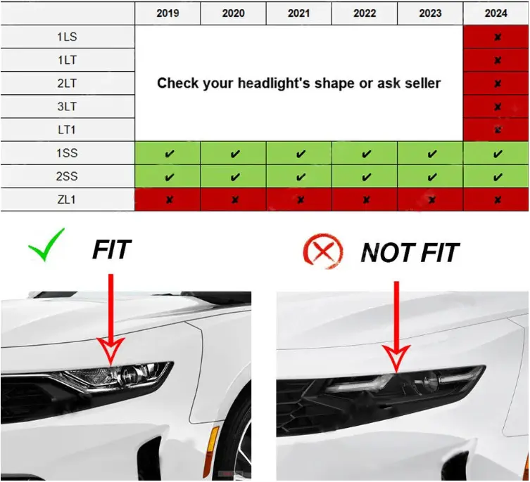 For 2019-2023 LS, 1LT, 2LT, 3LT, LT1 trims, please check your headlight's shape or ask seller.