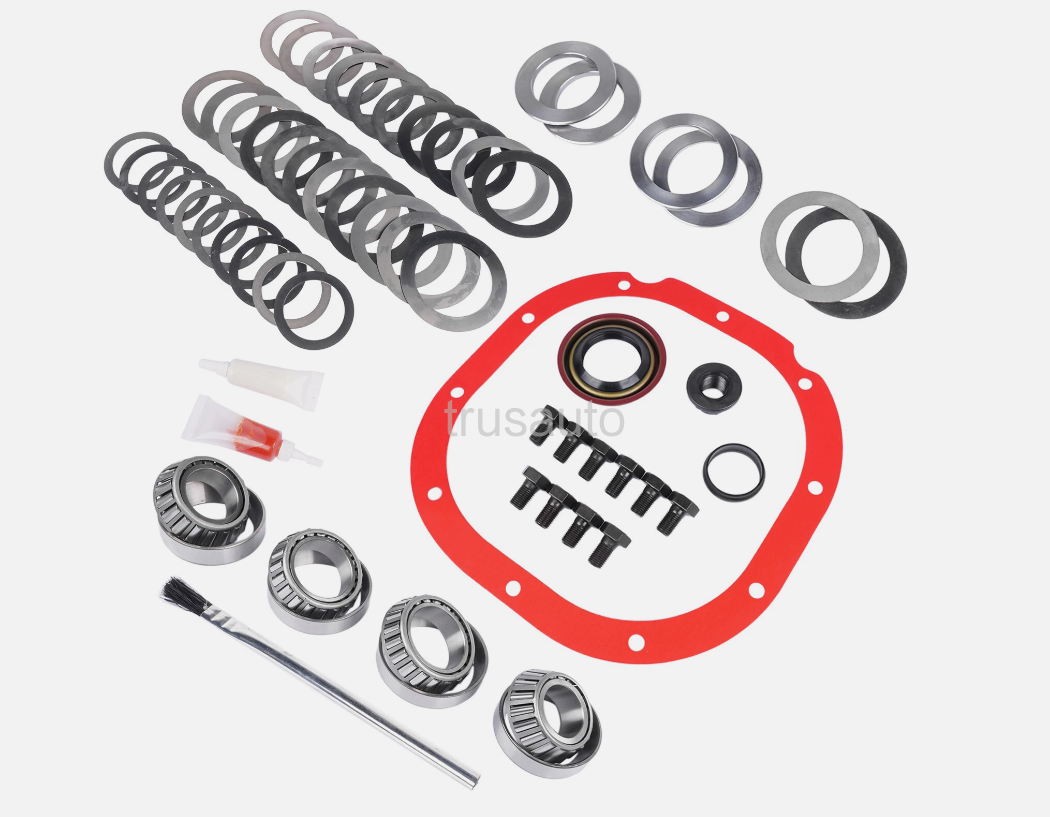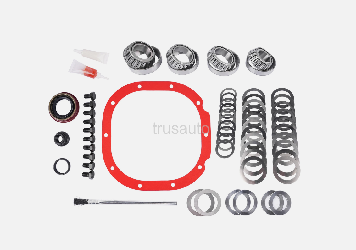 Master Bearing Kit Includes Tapered Bearings (Carrier, Front and Rear Pinion, Pilot where applicable), Brush, Cover Gasket (or RTV), Crush Sleeve (or Preload Shim Pack), Marking Compound, Pinion Nut, Pinion Seal, Ring Gear Bolts, Shims (Pinion, Carrier), and Thread Locking Compound