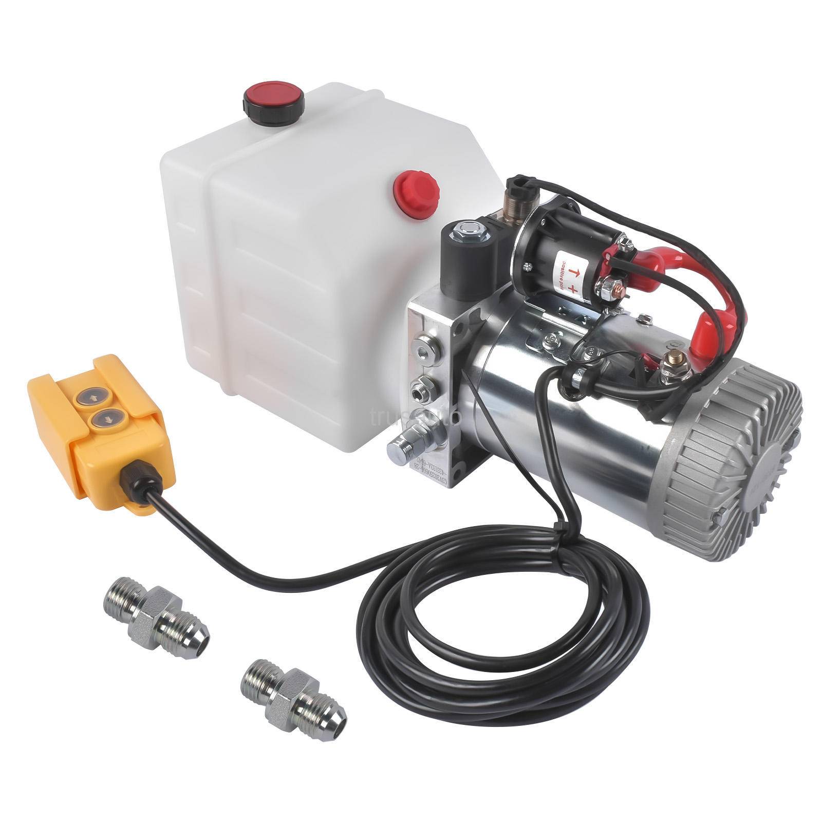 4 Quart Single Acting Hydraulic Pump Power Unit DC12V Dump Trailer Plastic Tank