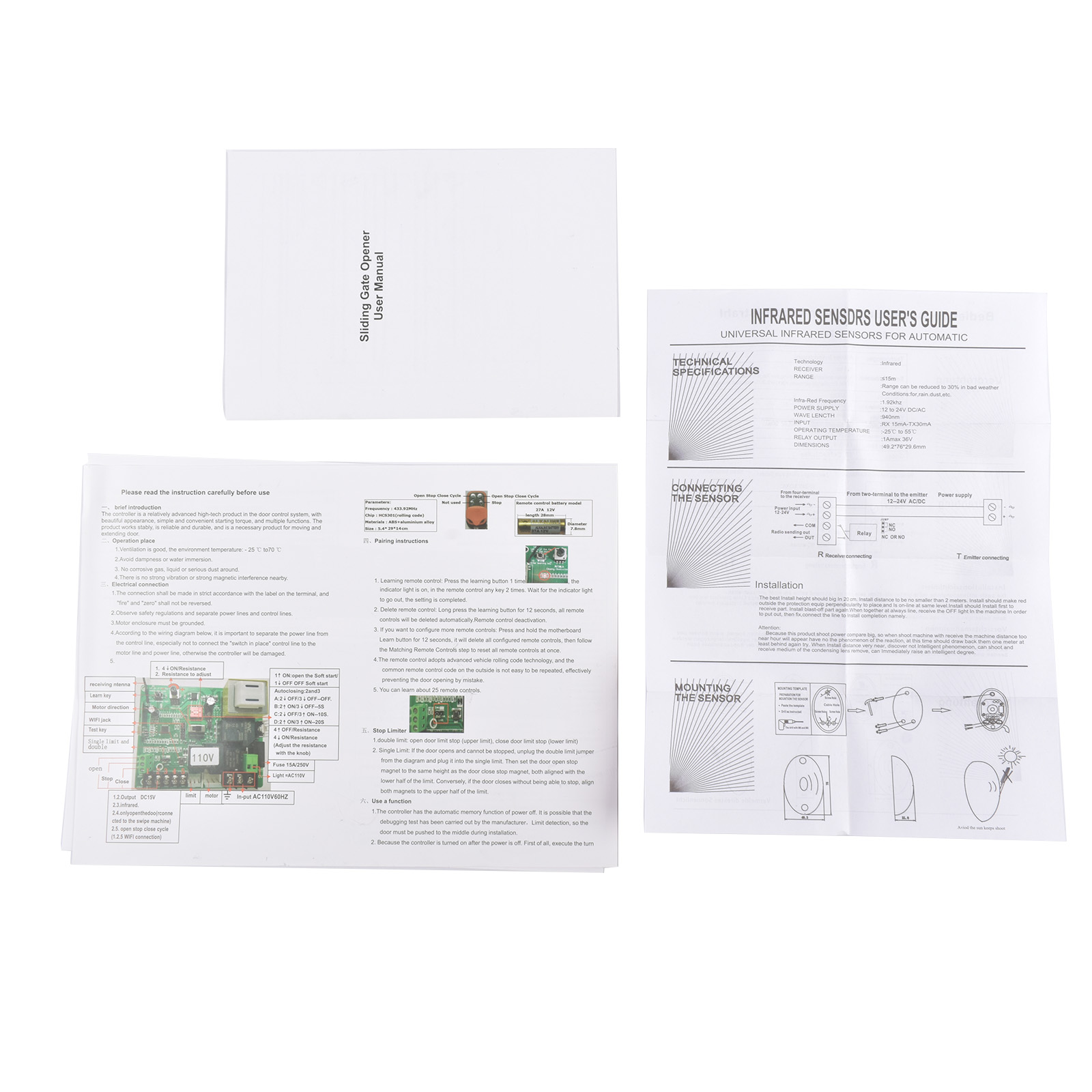 ✅Powerful and Safet - This automatic gate opener with powerful 550W electric motor, which starts smoothly at a speed of 40ft per minute. Can pull gates up to 3300lbs, saving time and effort. The motor has a temperature protector, when the temperature is too high, the motor automatically cuts off the power supply to protect the motor. And it also has motor time protection, to avoid the motor running for a long time in the event of a trip failure, the default time is 90M, you can adjust it yourself.High safety, waterproof and explosion-proof.