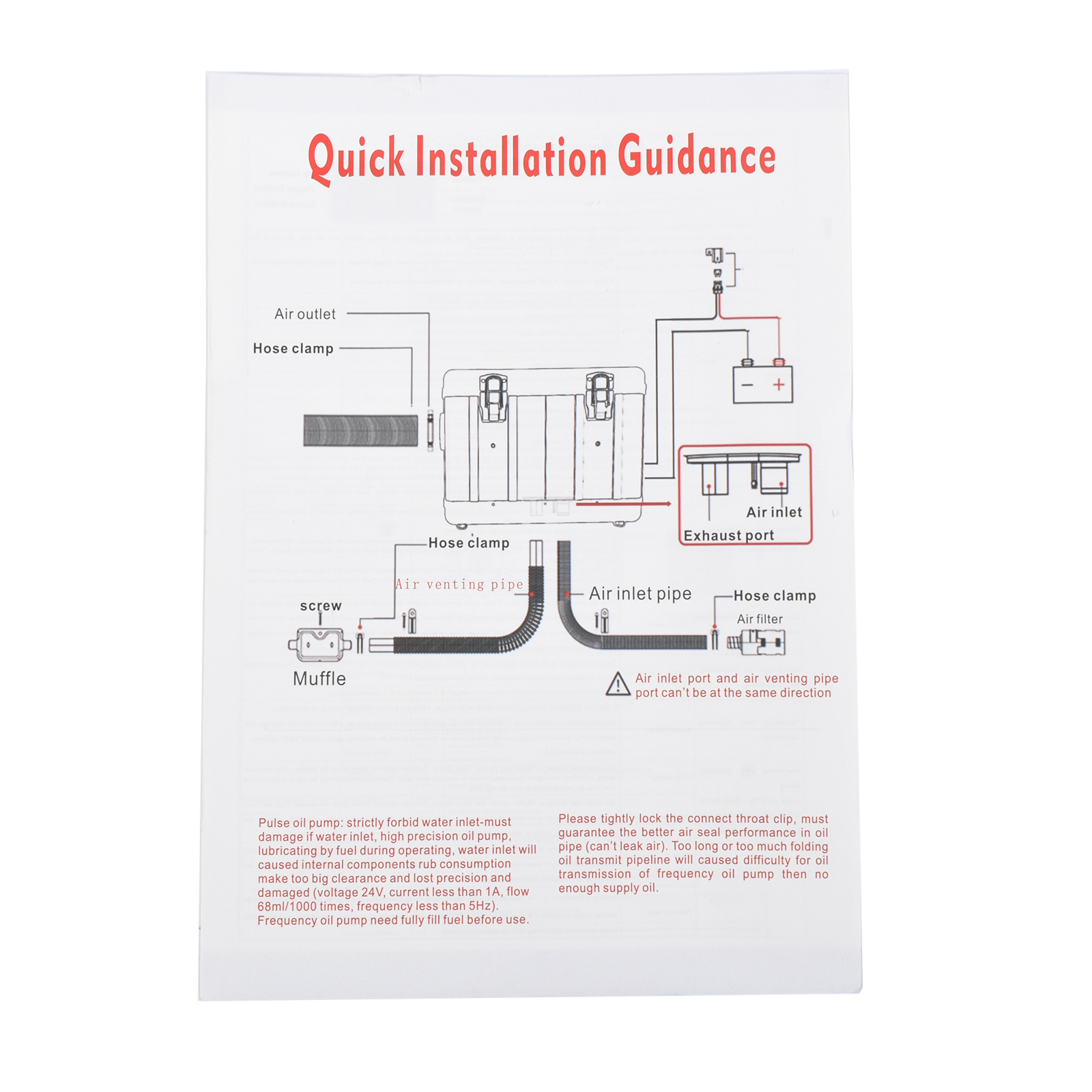1. Heating the Car/Indoor Space: Heating the space by outputting warm air through the heat conversion in the combustion chamber of the heater. 2. Small size, space saving, comfortable to carry, portable. 3. Temperature (Celsius/Fahrenheit switching) adjustment setting. 4. Timing Switch Function: Start and close according to the set time. 5. Plateau Motherboard: It can automatically adjust the fuel output based on the altitude of the plateau and display the altitude. 6. Timing switch function: start and close according to the set time. 7. The built-in fuel tank has no odor, and the oil level scale is marked, making it easy to monitor the oil level and refuel in a timely manner. 8. No installation of intake pipe, fixed air filter at the bottom, easy to install. 9. Install exhaust pipes on the side, without the need for bottom padding installation, and can effectively avoid the problem of exhaust pipe blockage. 10. The metal buckle opening and closing design is sturdy and sealed, and the fuel tank is completely built-in to prevent odor. It is easy to open and convenient for maintenance and repair.