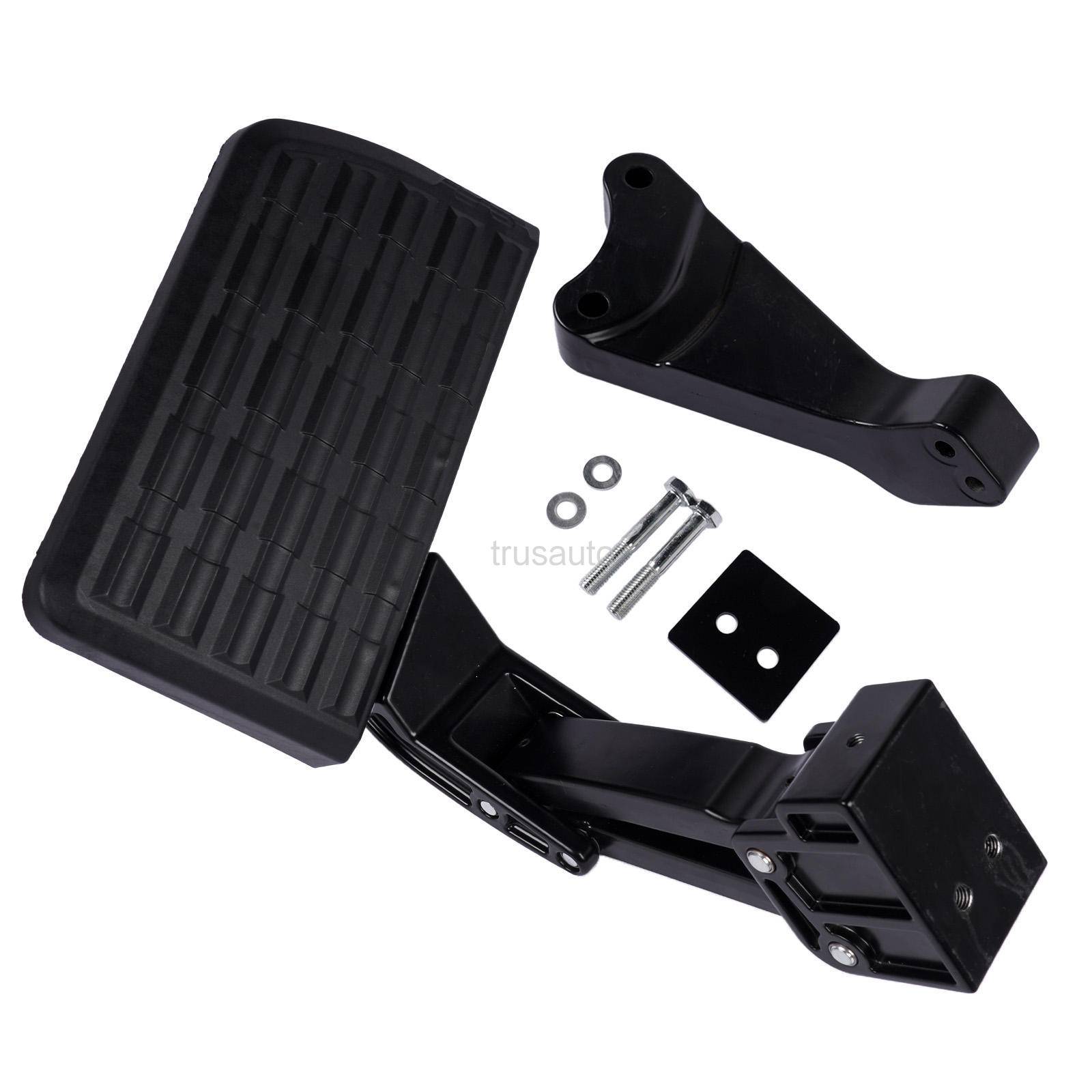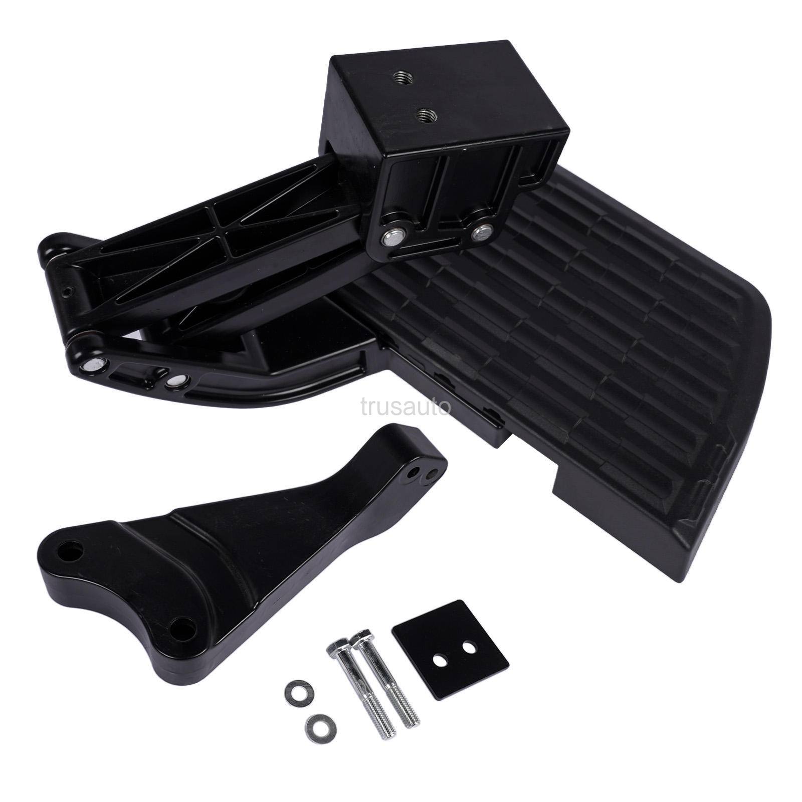 Mounts to the frame at the corner of the rear bumper Engineered to support up to 300 lbs Die-cast, aluminum alloy linkage components Precision stainless-steel pivot pins for rock-solid stability Maintenance-free, self lubricating bushings Corrosion-resistant, anodized and teflon-coated finish Durable, non-slip, glass-reinforced composite step pad