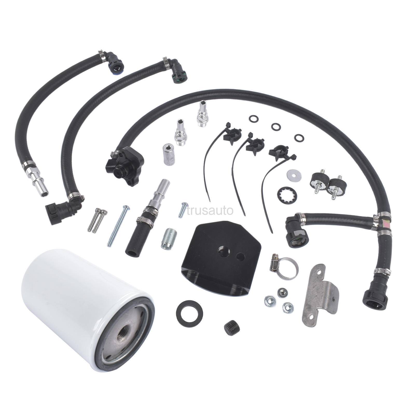 2011+ compatibility All OE-style quick connects New and improved Disaster Prevention Kit Fuel supply split-off 25 inches away from the CP4 pump Return filter isolates CP4 debris before it goes on to the tank Safeguards fuel injectors, rails, lines, and tank from CP4 debris